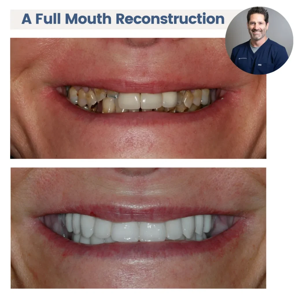 Explore a step-by-step full-mouth reconstruction for broken teeth, witnessing a life-changing transformation in confidence and function by Dr Adam Geach of Geach Dental, Los Angeles.