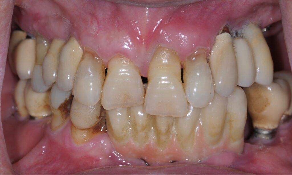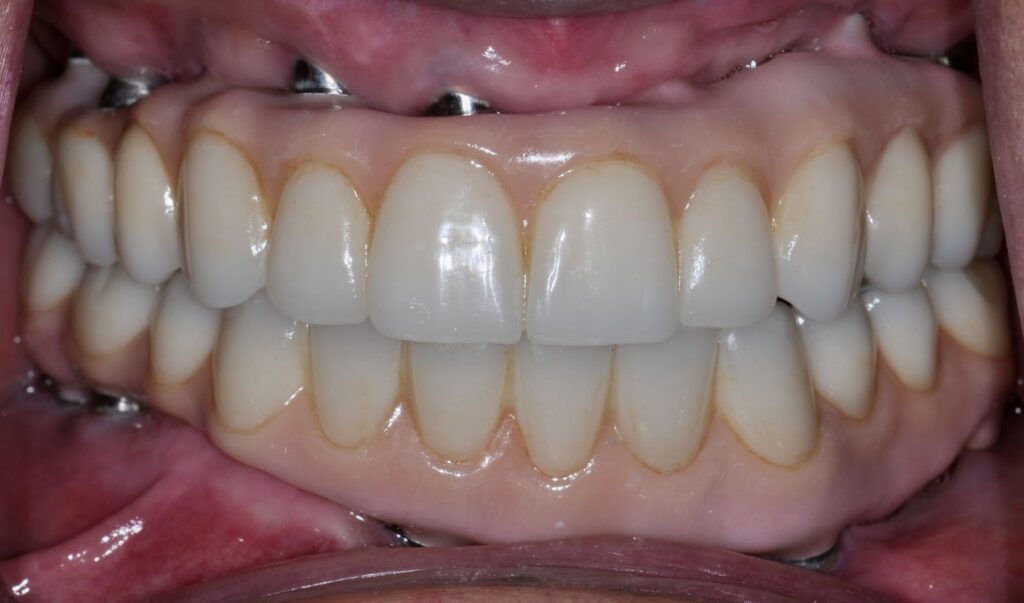 Replacing missing teeth with implants changes the treatment category from cosmetic to reconstructive. The case below shows how implants were used to reconstruct entire sets of teeth in both the upper and lower jaws.